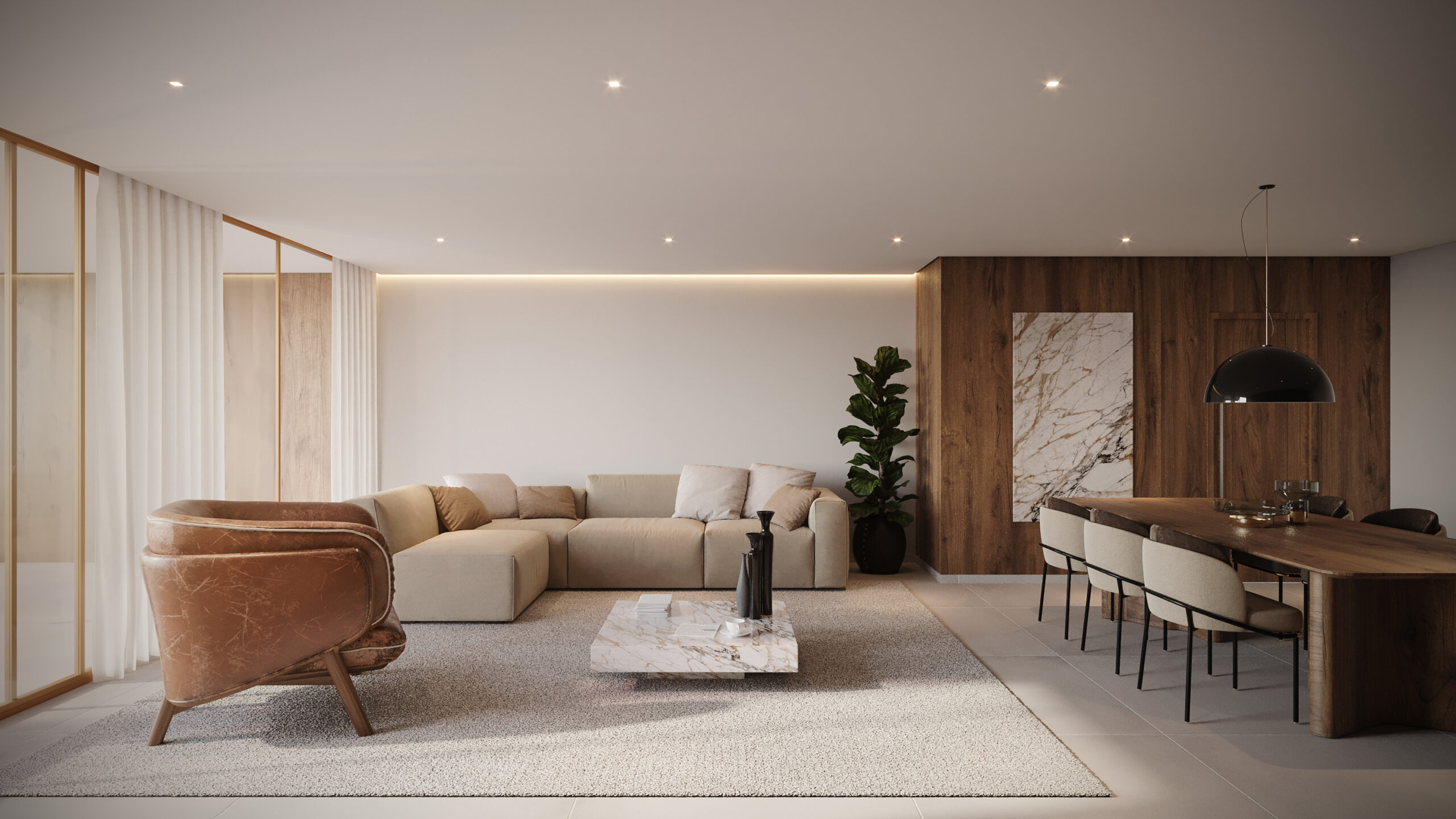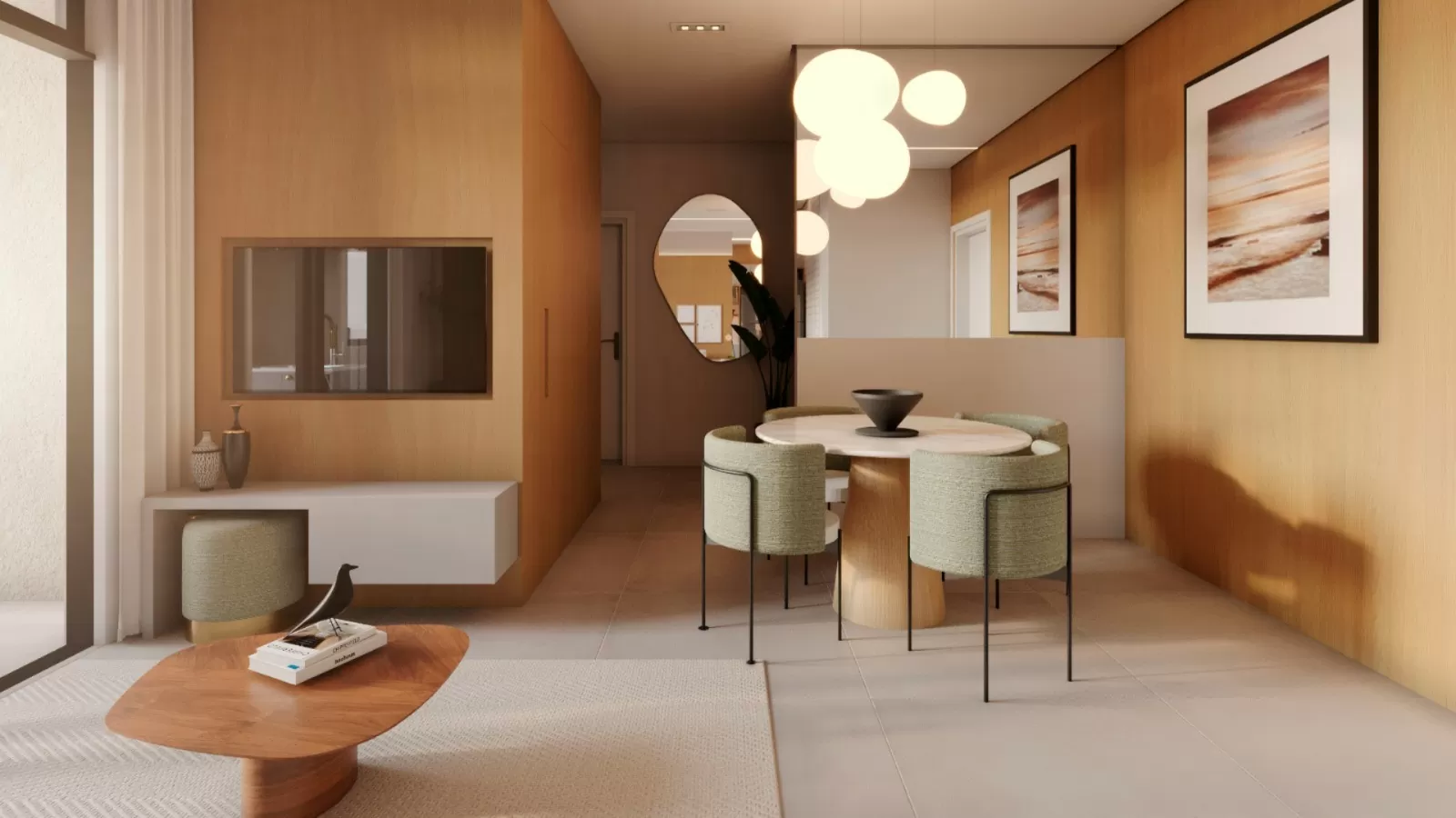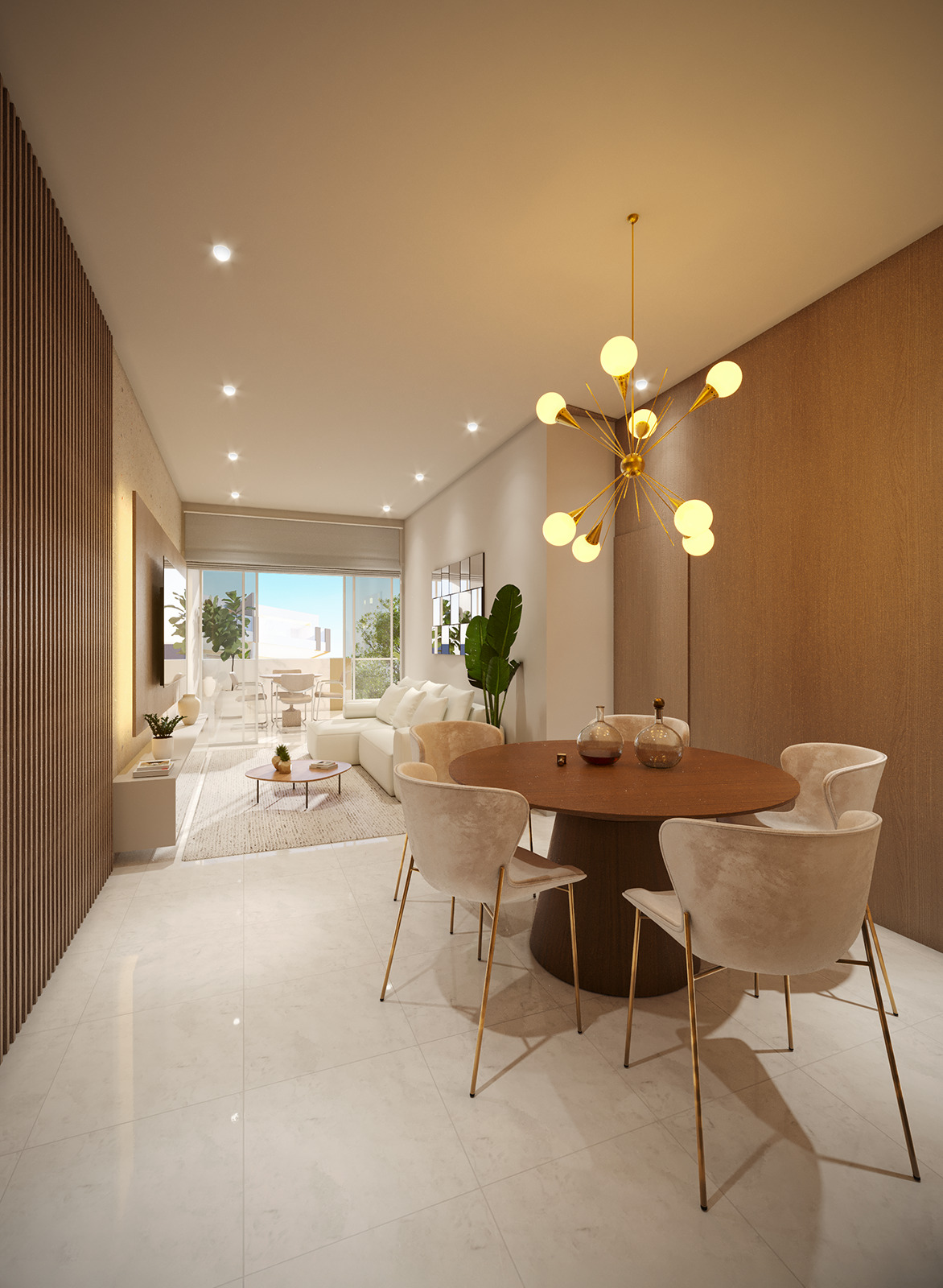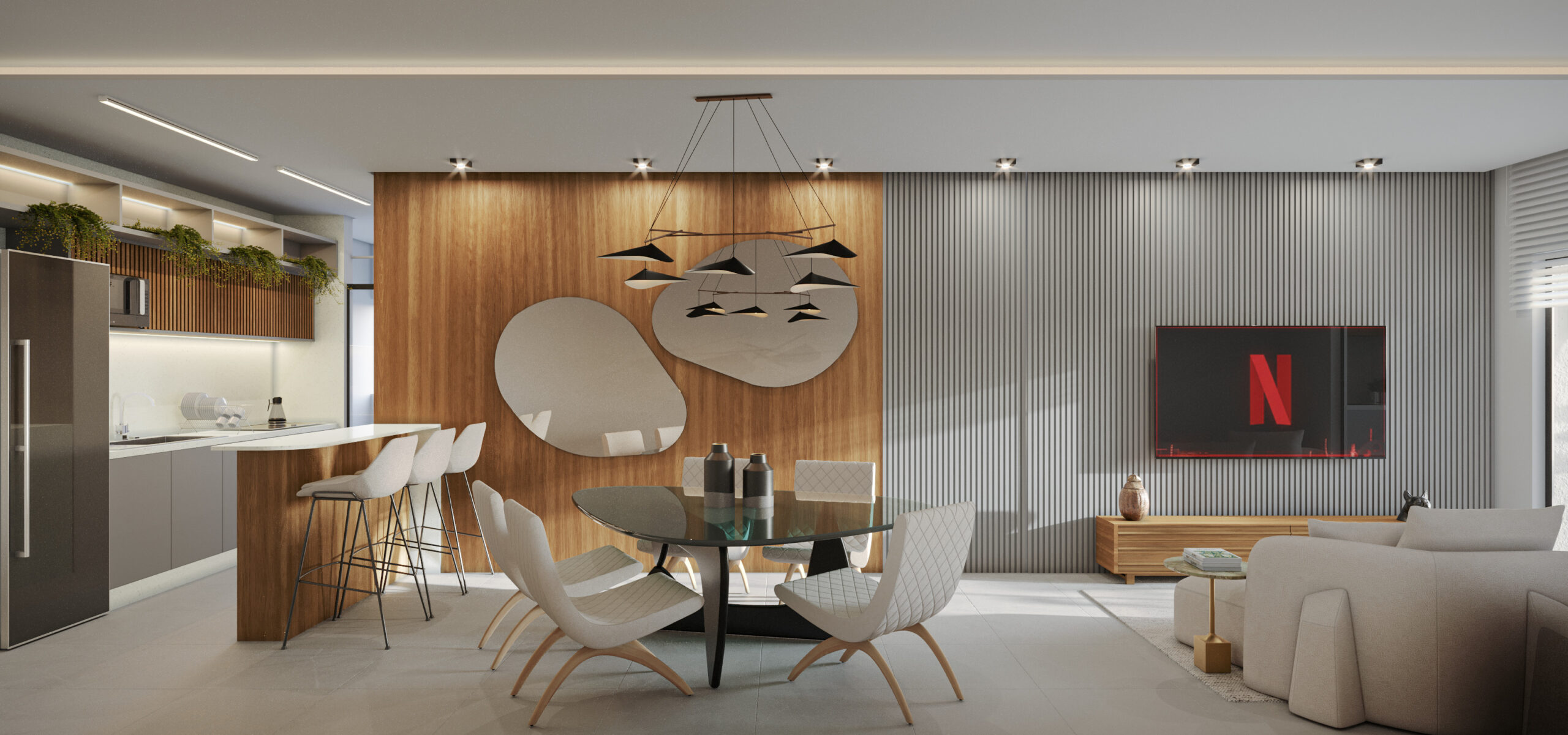 Renderizações realistas que valorizam o projeto, destacando materiais, iluminação e detalhes com alto impacto visual.